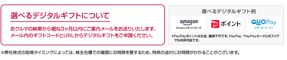 ※株主本人様のご購入の場合、10,000 円分の選べるデジタルギフトを贈呈いたします。