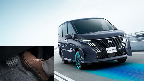 「e-Pedal Step」は、e-Pedalを進化させたワンペダル機能です。アクセルを踏み込めばレスポンスよく思いどおりに加速し、アクセルを戻せばモーターの回生によりなめらかにしっかりと減速します。アクセルペダルだけで車速を調整できるので、加減速を繰り返す市街地走行では、ブレーキへの踏みかえ頻度が減って運転の負荷が軽減できます。
