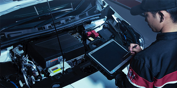 「おまとめプラン」なら、定期点検・車検、消耗品交換が月額料金に含まれています。また、日産のお店では、先進技術搭載車の点検は専門教育を受けた整備士が日産独自の電子診断機「コンサルト」を使用して故障診断を行います。さらに、電気自動車の場合にはEV専用点検も行うため、先進技術も搭載するEVも安心して乗ることができます。