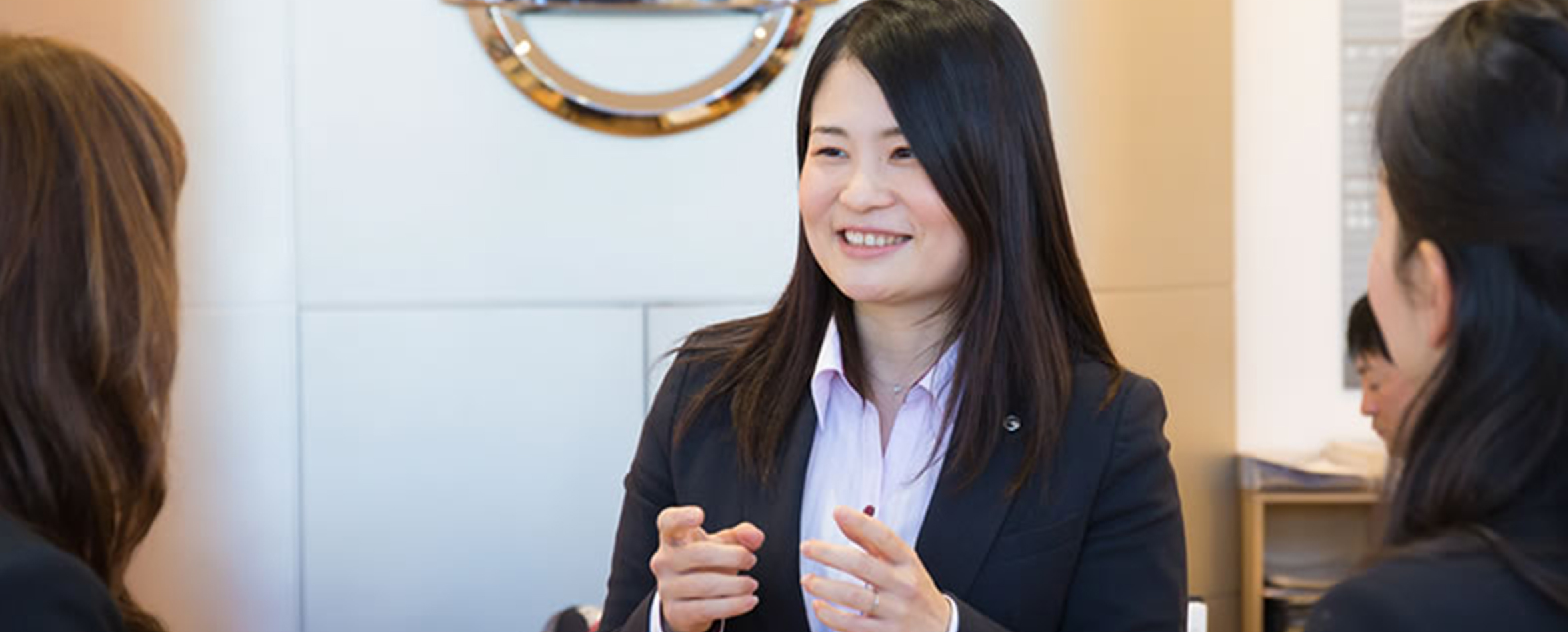 私はカーライフアドバイザー(CA)として入社して5年目で結婚し、8年目に子どもを出産しました。産休と育休を取得した後で職場に復帰し、現在は子育てをしながら時短勤務で働いています。働いている時間自体は短くなりましたが、効率的な働き方を意識することで、販売台数は出産以前と変わっていません。それどころか、小さな子どもをかかえていて、両手がふさがっていてもドアを自動で開閉でき、ベビーカーも畳まずにクルマに収納できる「ハンズフリーオートスライドドア」がどれだけ助かるかということを、より実感を持ってお客さまに提案できるようになりました。子育ての話でお客さまと盛り上がることもありますね。今の時代、子どもを育てながら働くことは、何も特別なことではありませんから、今後もCAとしてキャリアを歩み続けていきたいです。