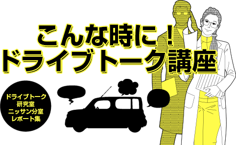 そこで我々「ドライブトーク研究室」は、ここにドライブトーク講座と銘打って、 心理学に基づいた会話のコツなどを、適度なノリで正しく分析した研究レポートを発表させて頂きます。