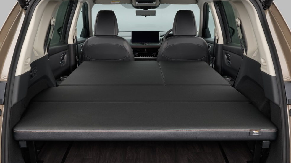 新たにラインアップする車中泊仕様車、エクストレイル「ROCK CREEK マルチベッド」。その「タフギア」感を強めたスタイルに、デザインと機能を両立するアクセサリーパッケージを装着し、ギア感を一層高めて出展します。