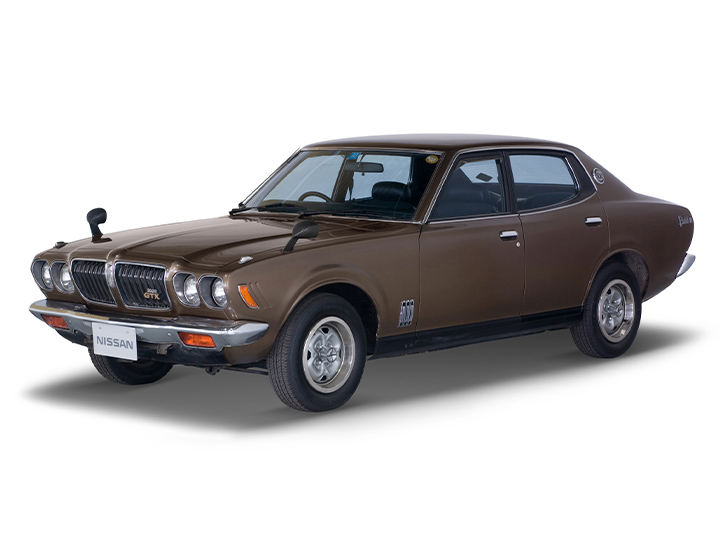 人気の先代モデル(P510型)の後を受け、4代目となるブルーバードU(610型)は1971年(昭和46年)に登場しました。アメリカ車的な雰囲気のフロントマスクやJラインと呼ばれるサイドウインドラインが好評を集めました。エンジンは、1600ccと1800ccのL型直列4気筒SOHCがあり、1800ccエンジンにはシングルキャブ/SUツインキャブ/電子制御燃料噴射装置・EGIという3タイプの仕様がありました。1973(昭和48)年、ブルーバードUのマイナーチェンジと前後して新発売されたのが「2000GT(G610型)」です。スカイラインと同じ2000ccのL20型エンジンを搭載したシリーズ最強モデルで、1.6ℓや1.8ℓのモデルとは大きく異なるロングノーズが最大の特徴です。4ドアセダンと2ドアハードトップがラインナップされました。グレード名称やフロントマスクのイメージなどから「ブルG」、「サメブル」の愛称で親しまれました。このクルマは4ドアセダン、SUツインキャブ125馬力仕様エンジン搭載の2000GTX仕様です。