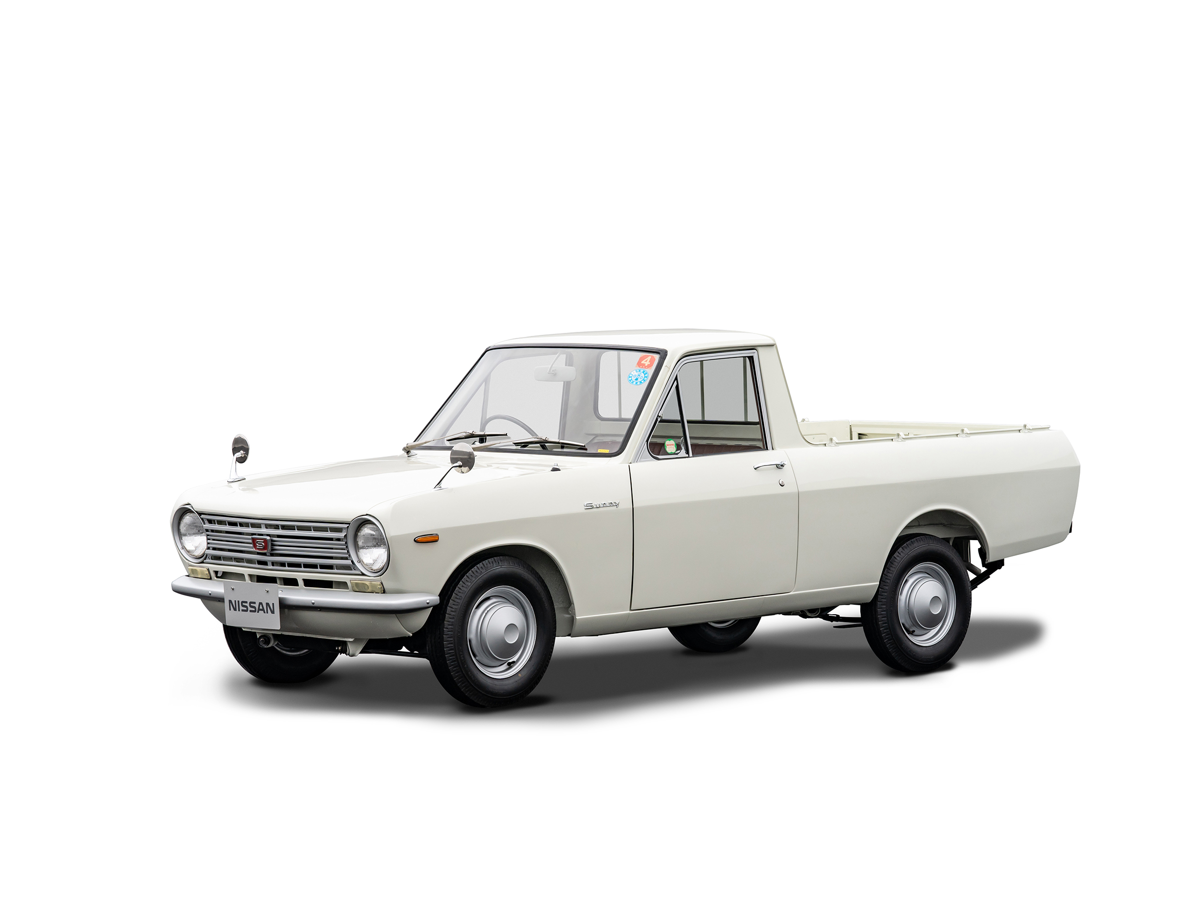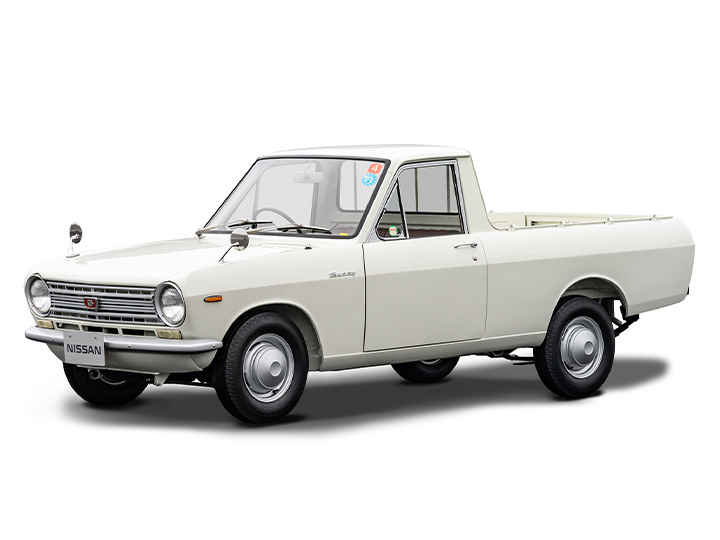 国民的な規模のネーミングキャンペーンを経て1966 (昭和41)年4月に正式発売になった新型大衆乗用車・ダットサンサニー1000は、その名の通り若々しいイメージ、軽快な乗り味、スタンダード41万円・デラックス46万円の低価格で、それまでマイカーに手が届かなかった若年層やヤングファミリーを中心に爆発的ヒットを記録します。いっぽう、サニー1000には当初から商用バンが設定され、翌1967 (昭和42)には、もうひとつの商用車で、その後長く「サニトラ」の愛称で親しまれるピックアップトラックも追加されました。36.5万円の低価格、56psの高出力、現代的なスタイル、最小回転半径4mの小回り性能などでライバルを凌駕し、これも大人気を博します。このクルマは、1968年(昭和43年)10月のマイナーチェンジ後のモデルです。
