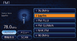 登録するプリセットリストを表示させます。FMを登録する場合は、登録したいプリセットリスト(FM1またはFM2)を選びます。