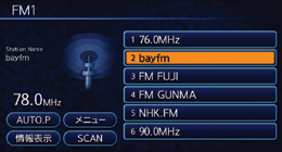 自動的に低い周波数から高い周波数へ放送局を検索します。放送局を受信すると5秒間止まり、再度検索を始めます。再度タッチすると、検索を終了します。