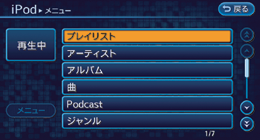 再生方法の選択画面が表示されます。(プレイリストやアーティストリストなどを表示中に操作できます。)