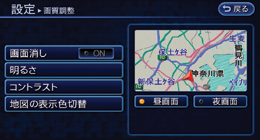 表示色切り替えで設定した結果は保存されます。ライトを点灯しても昼画面だったり、消灯時も夜画面の場合は、 表示色切り替えで設定し直してください。