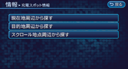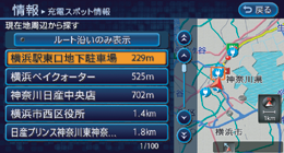 充電スポット情報の詳細や現在の位置などが更新されている可能性があります。目的地として設定される場合は、営業時間や充電設備などの情報をお客さま自身で確認されることをお薦めします。また、リチウムイオンバッテリー残量を考慮したドライブ計画を立ててください。