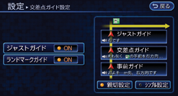 設定 → ナビゲーション → ルートガイドの設定 → ルートガイド音声の詳細設定 → 交差点ガイド設定をタッチする