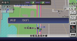有料道路で料金所に近づいたときに、料金を音声ガイドとテロップで案内します。案内された料金は目安です。