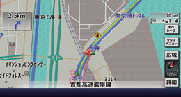 合流地点に近づくと、合流マークが表示され、音声で案内します。