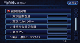 履歴リストに目的地(経由地)を設定した日付が表示されます。新しいものから順に100件まで自動的に登録されます。