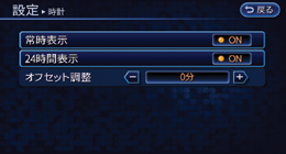 時計を画面上に表示させたり、時刻を調整できます。表示されている時刻は、GPSシステムにより、ほぼ正確に表示されます。