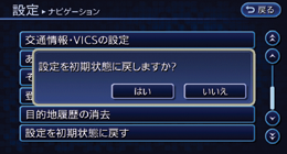 ナビの設定が初期状態になります。登録した場所やルートなどは、初期状態に戻しても消去されません。