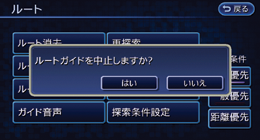 メニューボタンを押し、ルート → ルート復帰 → はいの順でタッチします。