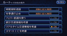 リアルタイム交通情報を考慮しないでルートを設定します。
