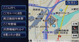 を合わせた地点周辺の充電スポット情報を更新します。目的地、経由地、登録地アイコンに