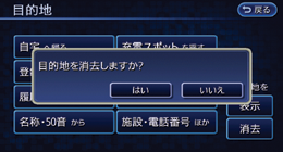 目的地を消去すると、設定したルートも同時に消去されます。