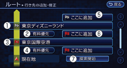 設定されているルートの目的地や経由地、探索条件を変更できます。