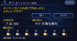 タイマーエアコンは、出発予定時刻および作動する曜日を設定できます。これらの設定は2パターンまで保存することができます。