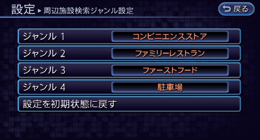 変更した周辺施設のリストは、周辺施設を検索するときの施設ジャンルになります。