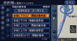 リスト画面の50音をタッチすると、タッチした文字で始まるリストが表示されます。