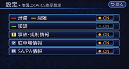 地図縮尺が2km以上のときは、渋滞情報やVICS情報は地図表示されません。