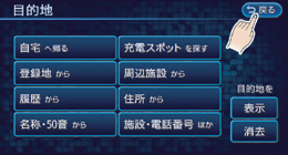 先頭のメニュー画面の場合は、現在地画面を表示します。