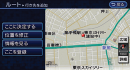 をタッチすると、設定済みの目的地が経由地となり、追加する地点が目的地となります。