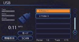 ボタンを押すごとに、TV1 → TV2 → iPod/USB → Bluetooth®オーディオ *1 → AUXに切り替わります。