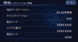 地図データおよびナビソフトのバージョンなどを確認できます。