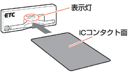 ETCカードのICコンタクト面が上面・挿入口側になるようにして挿入してください。