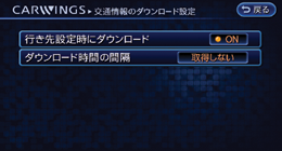 CARWINGS → CARWINGS設定 → 交通情報のダウンロード設定をタッチする