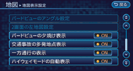 マップメニュー → 地図ビューの設定 → 地図表示設定をタッチする