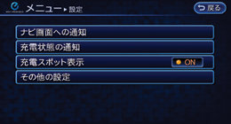 リチウムイオンバッテリー残量が低下したり、出力制限がかかった場合に、ナビ画面でも通知するか設定します。