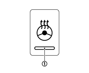 電源ポジションがONのときに、ステアリングヒータースイッチを押すと、表示灯(1)が点灯してステアリングが加熱し、ON/OFFを繰り返しながらステアリングの表面温度が約20℃を超える温度を保ちます。