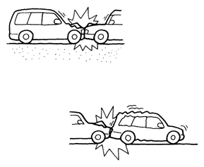 停車中や走行中の車に正面衝突したとき。
