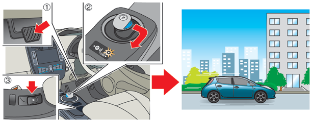 通常、街中を走行するときや、航続距離を延ばしたいときは、シフトポジションをECO(エコ)にしてください。D(ドライブ)のときと比較してアクセルペダルから足を離したときの回生ブレーキが強くなり、リチウムイオンバッテリーにより多くのエネルギーが回収され、航続可能距離が延びます。また、加速するときや、エアコンに使用される電力も抑えることができます。ただし、加速力やエアコンの効きは低下します。