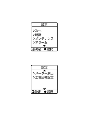 交換/メンテナンス項目の距離を設定するか、そのリセットを行うには、このサブメニューを選択します。 3種類までの他の項目を設定できます。 必要に応じて設定してください。