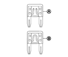 イラストの(A)のようにヒューズが切れているときは、新品(B)と交換してください。