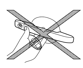 インテリジェントキーを手に持ったままドアハンドルのリクエストスイッチを押さないでください。ドアハンドルに近すぎると、システムはインテリジェントキーが車外にあるかどうか認識しにくくなります。