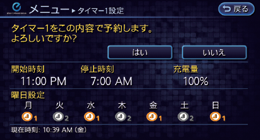 充電中は、タイマー充電の設定は変更できません。充電中にタイマー充電の設定を変更すると、変更内容は次回の予約から反映されます。