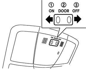 マップランプのコントロールスイッチには、ON(1)、DOOR(2)、OFF(3)の3つの位置があります。