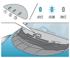12Vバッテリーを充電しているとき、タイマ―エアコン作動時、乗る前エアコン(リモート)作動時は、インジケーター(3)が点滅します。