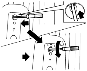工具を挿入して、押し込みながら反時計回りに回し続けます。