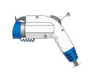 屋外の駐車場などで充電を行うときは盗難防止のため、充電コネクタを接続してから(A)の位置に南京錠を取り付けることをおすすめします。この部分に南京錠を取り付けることで、充電コネクタを車両から取り外すことができなくなります。南京錠については、日産販売会社にご相談ください。