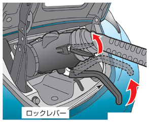 ロックレバーをカチッと音がするまで握ってください。ロック解除レバーが上がって急速充電コネクタがロックされます。