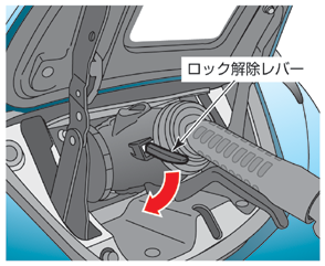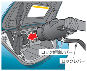 ロック解除レバーを押しながら、急速充電コネクタを車両から取り外します。