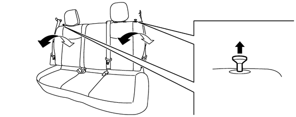 後席シート左右にあるノブを引いたままゆっくりと背もたれを前に倒します。